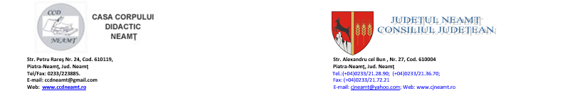 Proiectul este finanțat prin Programul Operațional Capital Uman și a fost demarat în luna mai 2018 de către Casa Corpului Didactic Neamț, în parteneriat cu Județul Neamț, prin Consiliul Județean Neamț. Valoarea totală a proiectului este de 4.486.583,40 lei, din care Consiliul Județean Neamț are alocat un buget de 2.058.367,47 lei, cu o contribuție proprie de 41.167,35 lei.